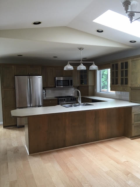 Instead of replacing her cabinets she called us in to paint them as well as paint the walls and ceiling. We have a specialized system for cabinet painting that saves money and gives a near spray finish.